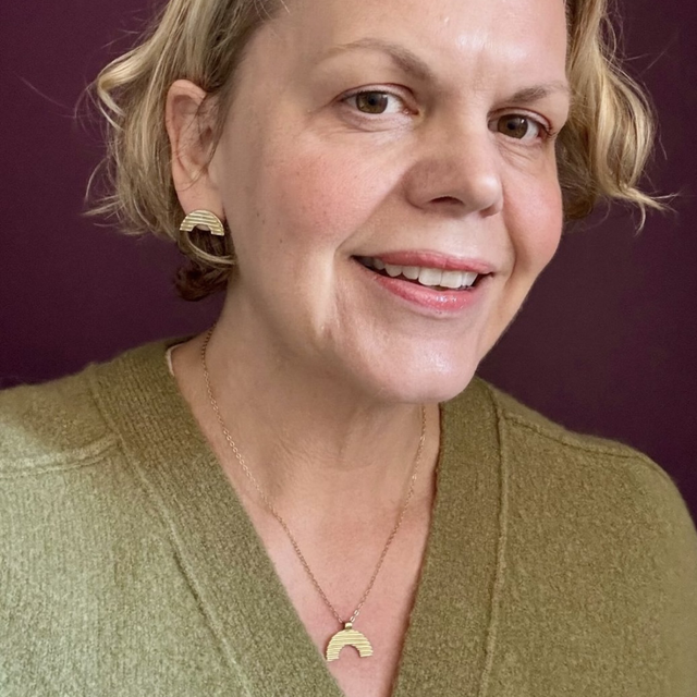 Have a look at other matching pieces from the Gold Striped collection. This Gold Striped Rainbow Necklace matches the Gold Striped Rainbow Studs.
